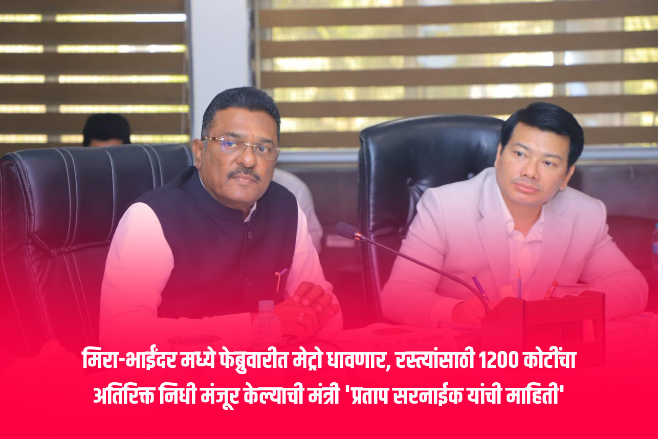 मिरा-भाईंदरच्या विकासाला वेग : फेब्रुवारीत मेट्रो धावणार, रस्त्यांसाठी १२०० कोटींचा अतिरिक्त निधी मंजूर — मंत्री प्रताप सरनाईक यांची माहिती