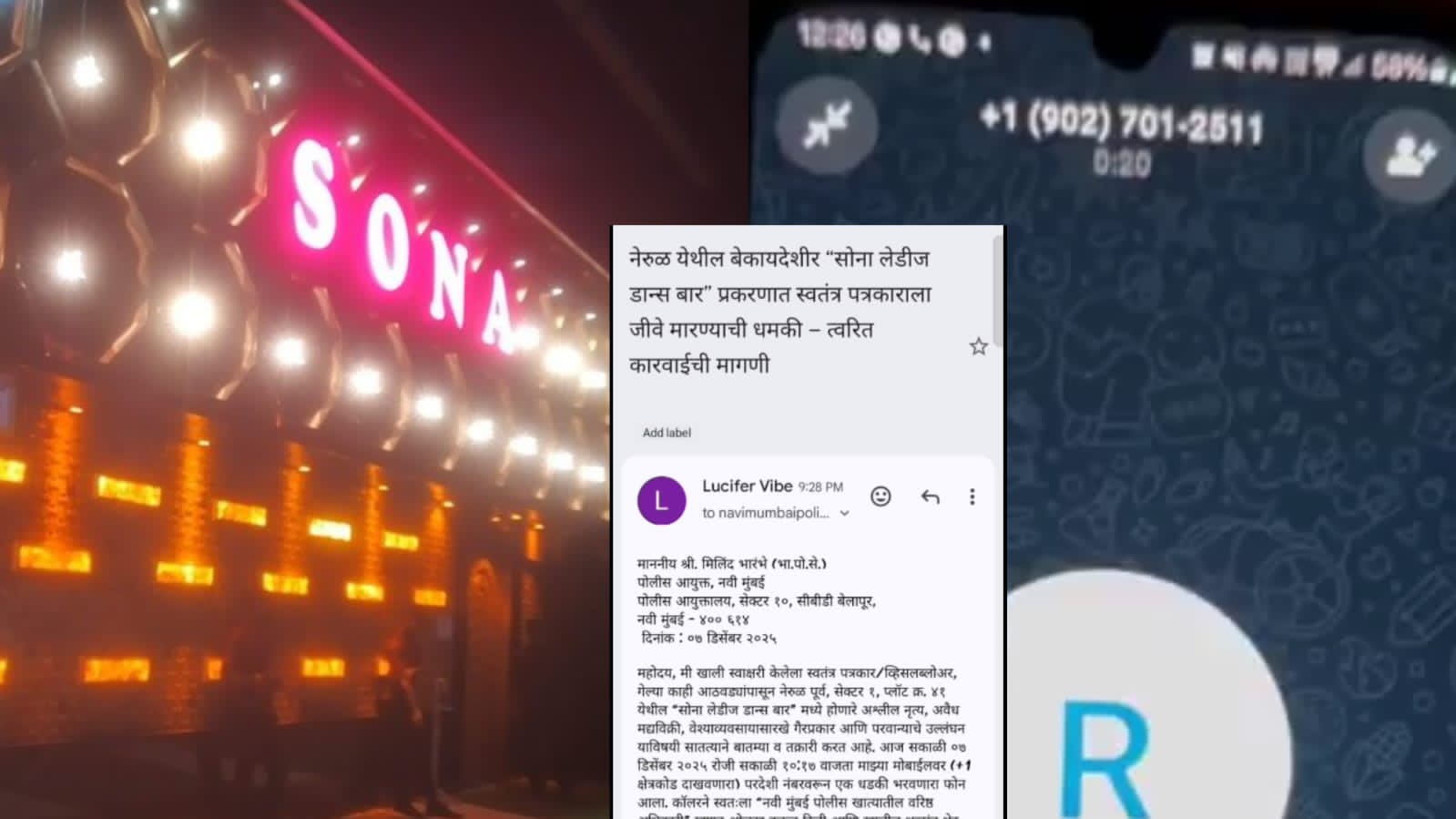 सत्य परिचित – नवी मुंबई (प्रतिनिधी) 08 डिसेंबर : नेरुळ येथील बेकायदेशीर ‘सोना लेडीज डान्स बार’ संदर्भातील धक्कादायक तपशील उघड करत असलेल्या एका स्वतंत्र पत्रकार–व्हिसलब्लोअरने स्वतःला गंभीर जीविताचा धोका असल्याचा आरोप केला आहे. संबंधित पत्रकाराच्या म्हणण्यानुसार, आज सकाळी त्याला “+1” (USA) देशकोड असलेल्या परदेशी क्रमांकावरून फोन आला. कॉल करणाऱ्या व्यक्तीने स्वतःला “पोलीस विभागातील वरिष्ठ अधिकारी” म्हणून ओळख दिली आणि थेट जीवघेणी धमकी दिल्याचा दावा त्या पत्रकाराने केला आहे.