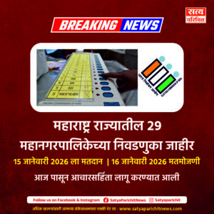 सत्य परिचित – मुंबई (प्रतिनिधी) 15 डिसेंबर :Maharashtra Muncipal Corporations Election Dates दीर्घकाळ प्रलंबित असलेल्या राज्यातील महानगरपालिका निवडणुकांचा कार्यक्रम अखेर जाहीर झाला आहे. राज्य निवडणूक आयोगाने मुंबई, ठाण्यासह एकूण २९ महानगरपालिकांसाठी १५ जानेवारी २०२६ रोजी मतदान घेण्याचा निर्णय जाहीर केला असून १६ जानेवारीला निकाल घोषित होणार आहे. यामुळे राज्याच्या राजकारणात पुन्हा एकदा स्थानिक स्वराज्य संस्थांच्या रणधुमाळीला सुरुवात झाली आहे.